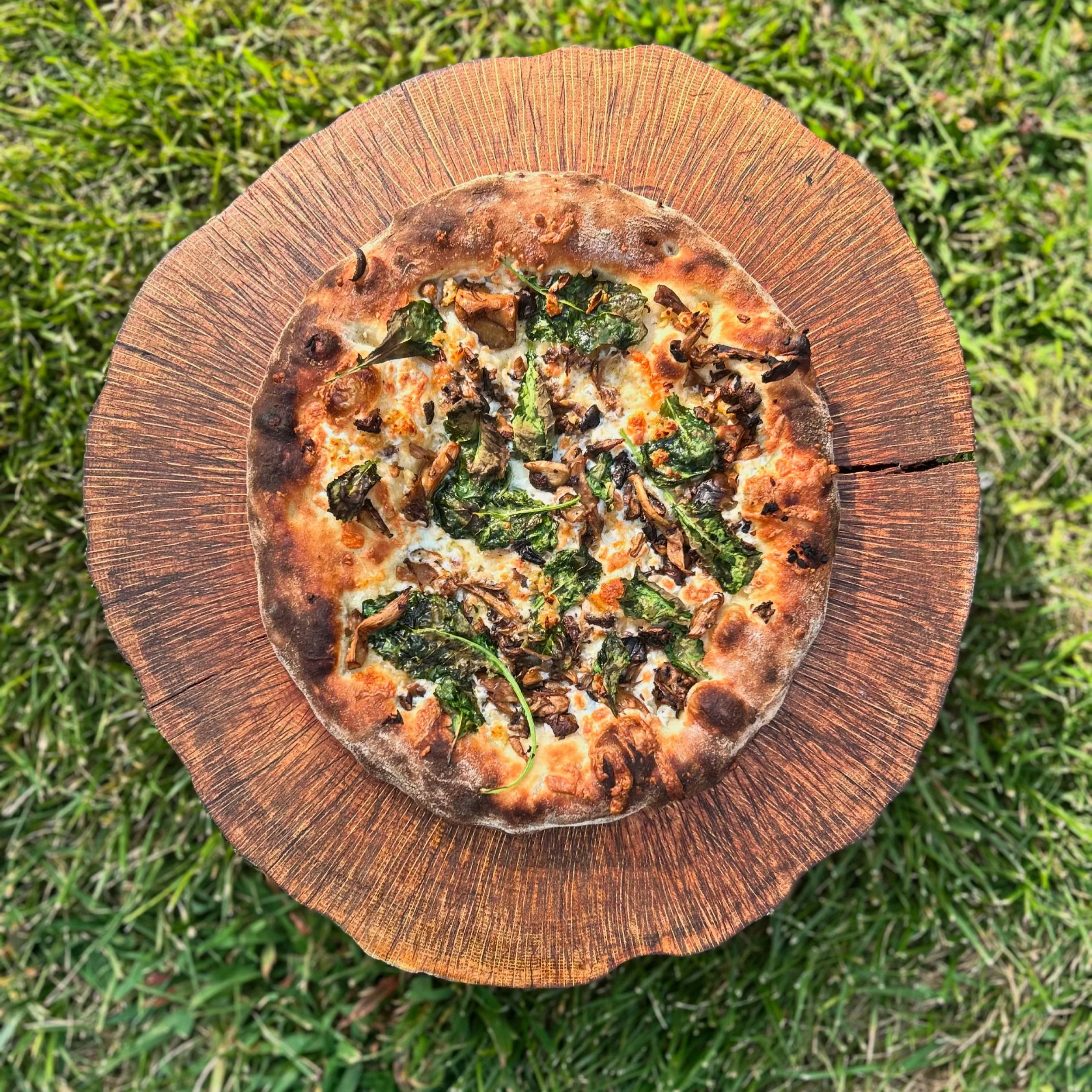 Wood-fired pizzas cooked to order in a wood-fired oven